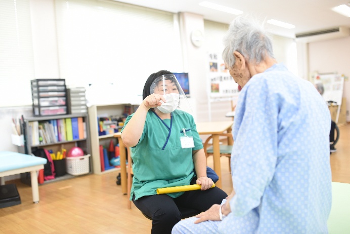 当院では、「脳血管リハビリⅠ」「廃用症候群リハビリⅠ」「運動器リハビリⅠ」「呼吸器リハビリⅠ」の各施設基準を取得し、理学療法士、作業療法士、言語聴覚士が連携して入院患者様へのリハビリテーションを積極的に実施しております。必要に応じて、退院後のフォローアップとして訪問リハビリも提供しています。また、菊名記念病院をはじめとする近隣の急性期病院と連携し、地域中核病院として地域包括ケア病棟を中心に、在宅復帰および施設復帰を目指した生活支援まで幅広くリハビリを行っています。具体的な取り組みとしては、入浴評価や食事評価、調理訓練、外出訓練、退院前訪問指導(家屋評価)、担当者会議やカンファレンスなど、多職種と連携した包括的な支援を推進しています。