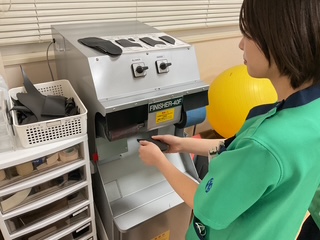 言語聴覚士(Speech Therapist:ST)は、言語によるコミュニケーションに困難のある方を対象に検査・評価を行い、その方が自分らしい生活を送れるよう支援する専門職です。また、摂食・嚥下リハビリテーションにも積極的に取り組んでおり、誤嚥性肺炎の予防や長期臥床による廃用症候群を呈した患者様の摂食嚥下障害に対しても評価や訓練を行っています。可能な限り口から食事をとっていただけるよう、摂食機能の改善や食事形態の選定など、多角的に支援しています。院内では、他職種と連携して嚥下内視鏡検査やミールラウンドを実施し、摂食栄養サポートチームの一員として、摂食嚥下に課題のある患者様に対しチームで関わっています。