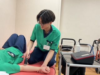 理学療法士(Physical Therapist:PT)は、ケガや病気などで身体に障害のある方や、障害の発生が予測される方に対し、運動能力(座る・立つ・歩くなど)の回復や維持、障害の悪化予防を目的としたリハビリテーションの専門職です。運動療法や温熱・電気などの物理的手段を用いた物理療法を駆使し、患者様が自立した日常生活を送れるよう支援します。当院では、早期からの離床を推進し、体力低下の予防に努めています。患者様の身体状況に合わせて、生活の基礎となる基本動作の練習を中心にリハビリを行っております。また、必要に応じて医師や義肢装具士と連携し、装具やインソールの調整も実施しています。