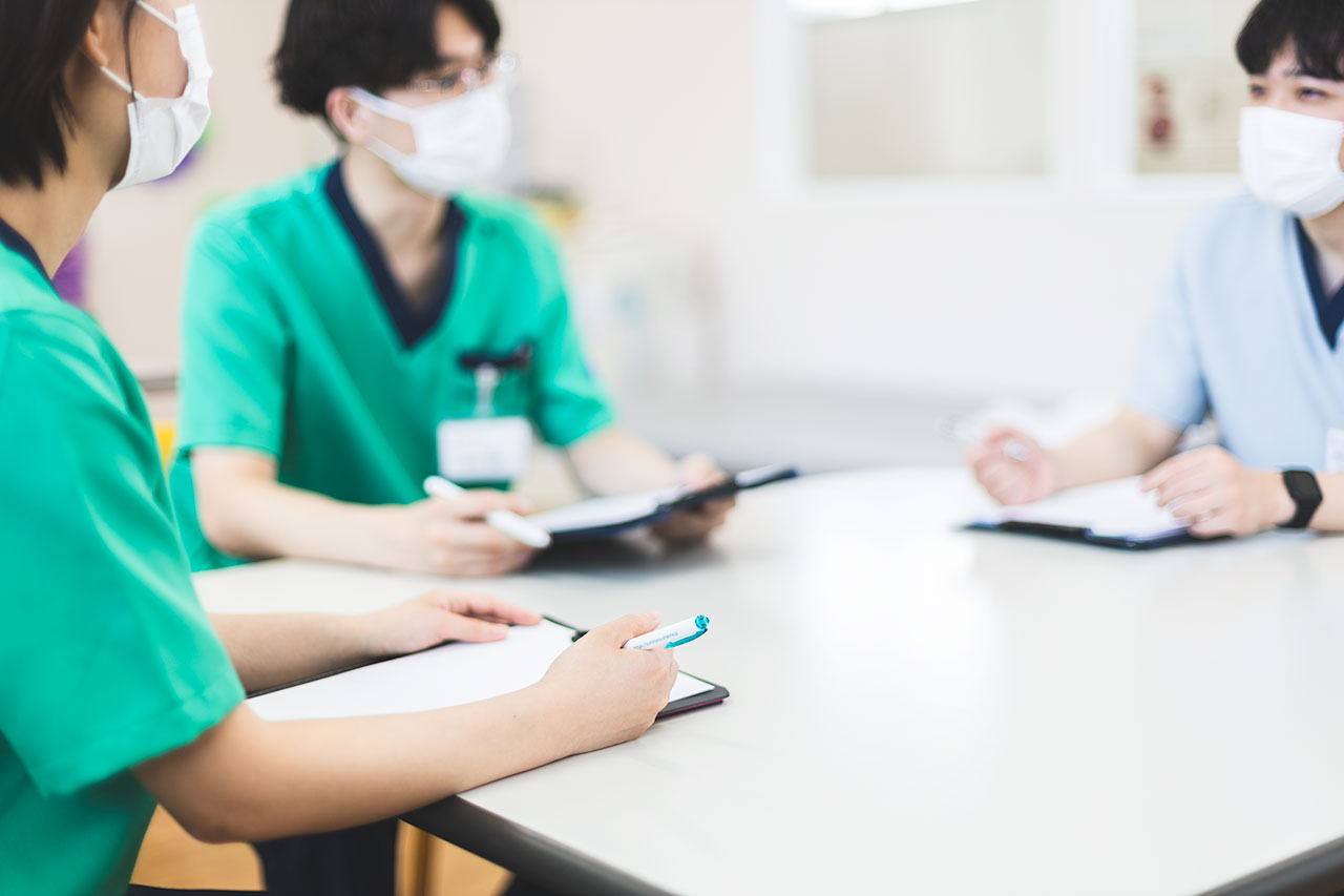 当院の地域包括ケア病棟では、1日最大6単位のリハビリテーションを提供しており、効率的かつ質の高い支援を行うために、**「2担当制」**を採用しています。たとえば、午前は先輩PTが3単位 午後は後輩OTが3単位を担当することで、同じ患者さんを複数のスタッフが分担して関わる体制をとっています。特に新入職者に対しては、必ず先輩スタッフとペアで同一の患者さんを担当するようにしており、いつでも相談できる環境が整っています。また、看護師・医師・管理栄養士・薬剤師・医療ソーシャルワーカーなどの多職種と連携しながら、患者さん一人ひとりの状態や生活背景をふまえたチームアプローチを実践しています。